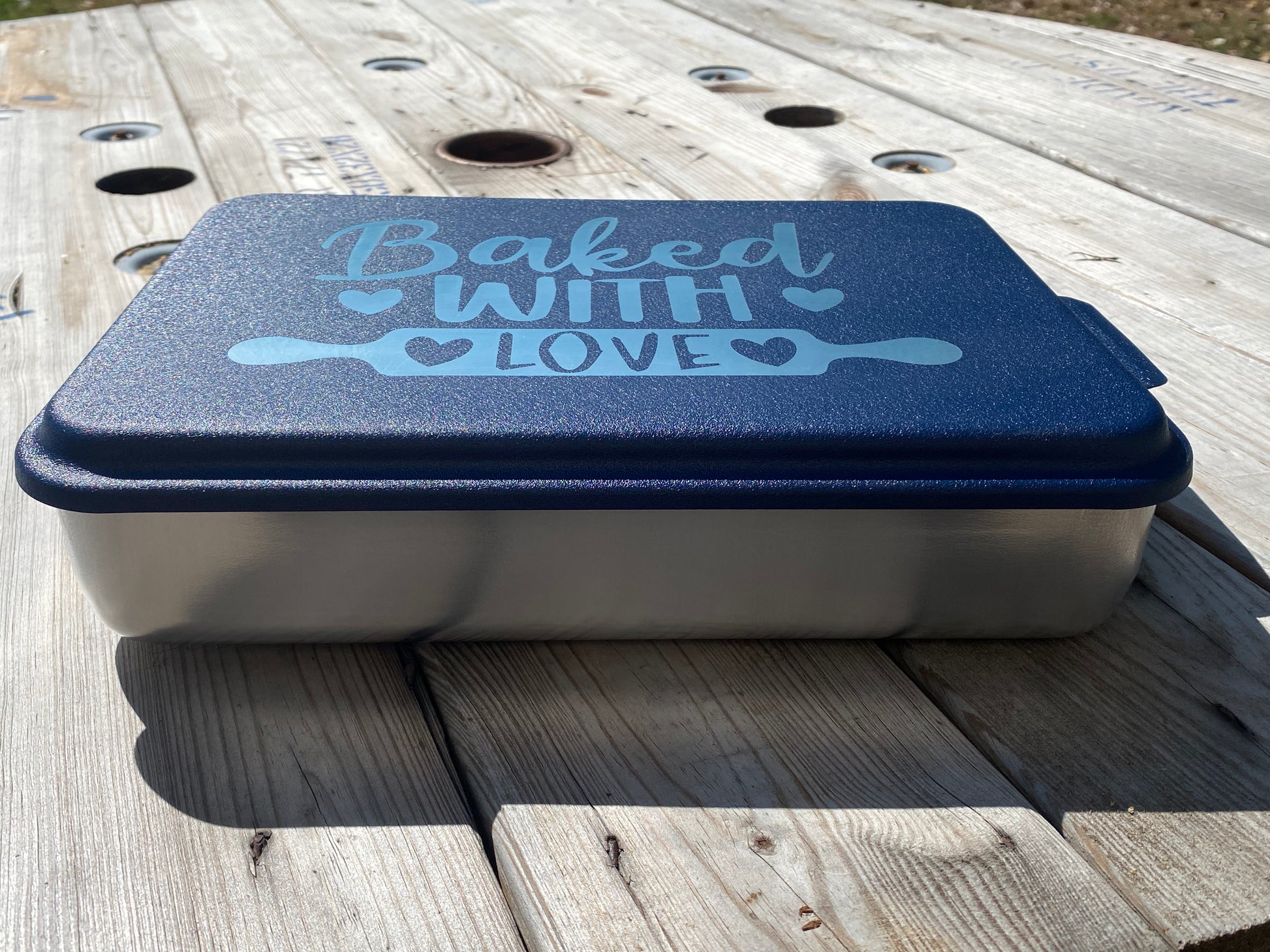 9 x 13 Aluminum Cake Pans are something almost anyone can use. These sturdypans have a powder coated lid that snaps on easily and securely and can be personalized! Add a monogram or name to personalize for a house warming, wedding, or bridal shower! Customize with a logo or other graphics to create the perfect award for a bake off! The possibilities are many, and with lids available in five beautiful colors there is one to fit anyone's decor.
