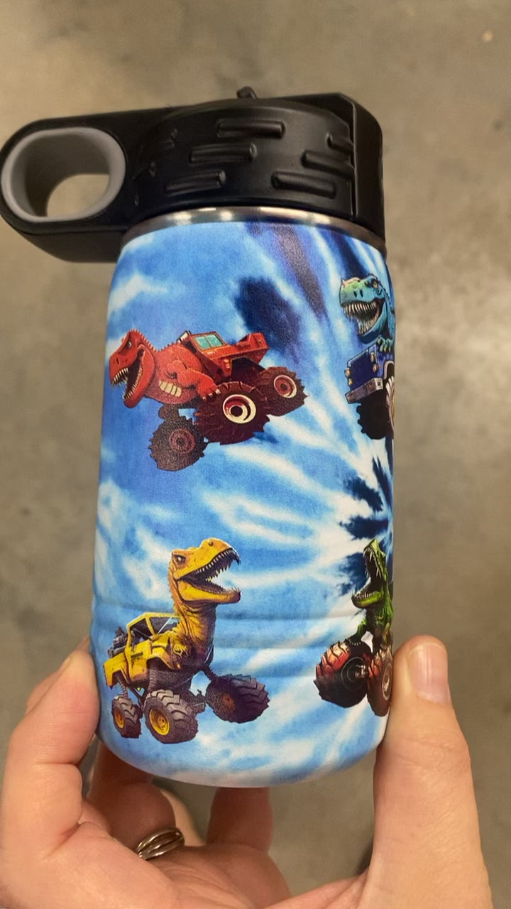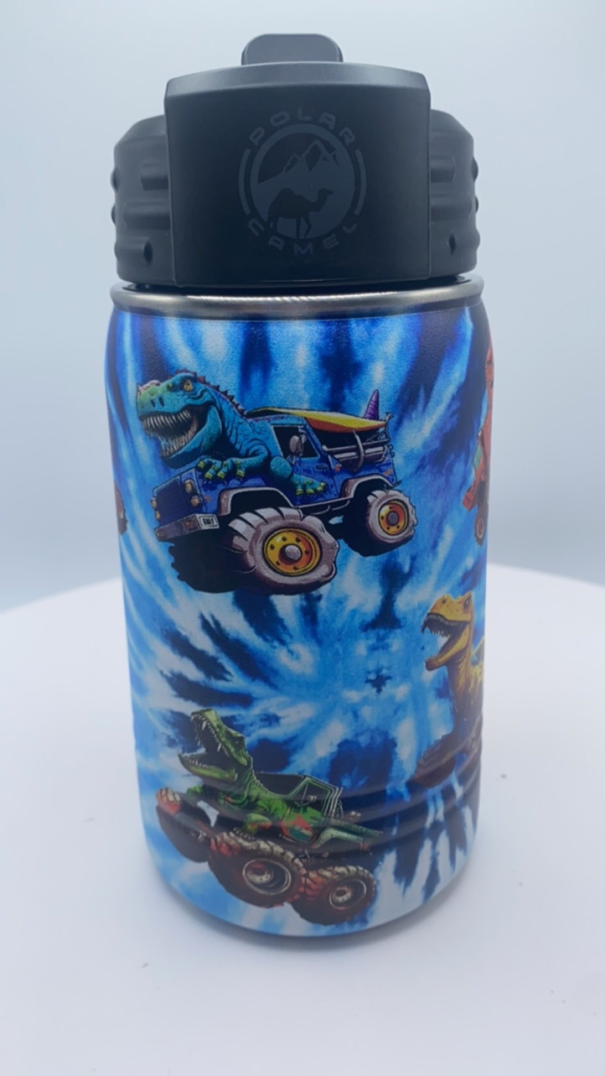 Dinosaur Trucks - 12 oz Water Bottle - UV printed