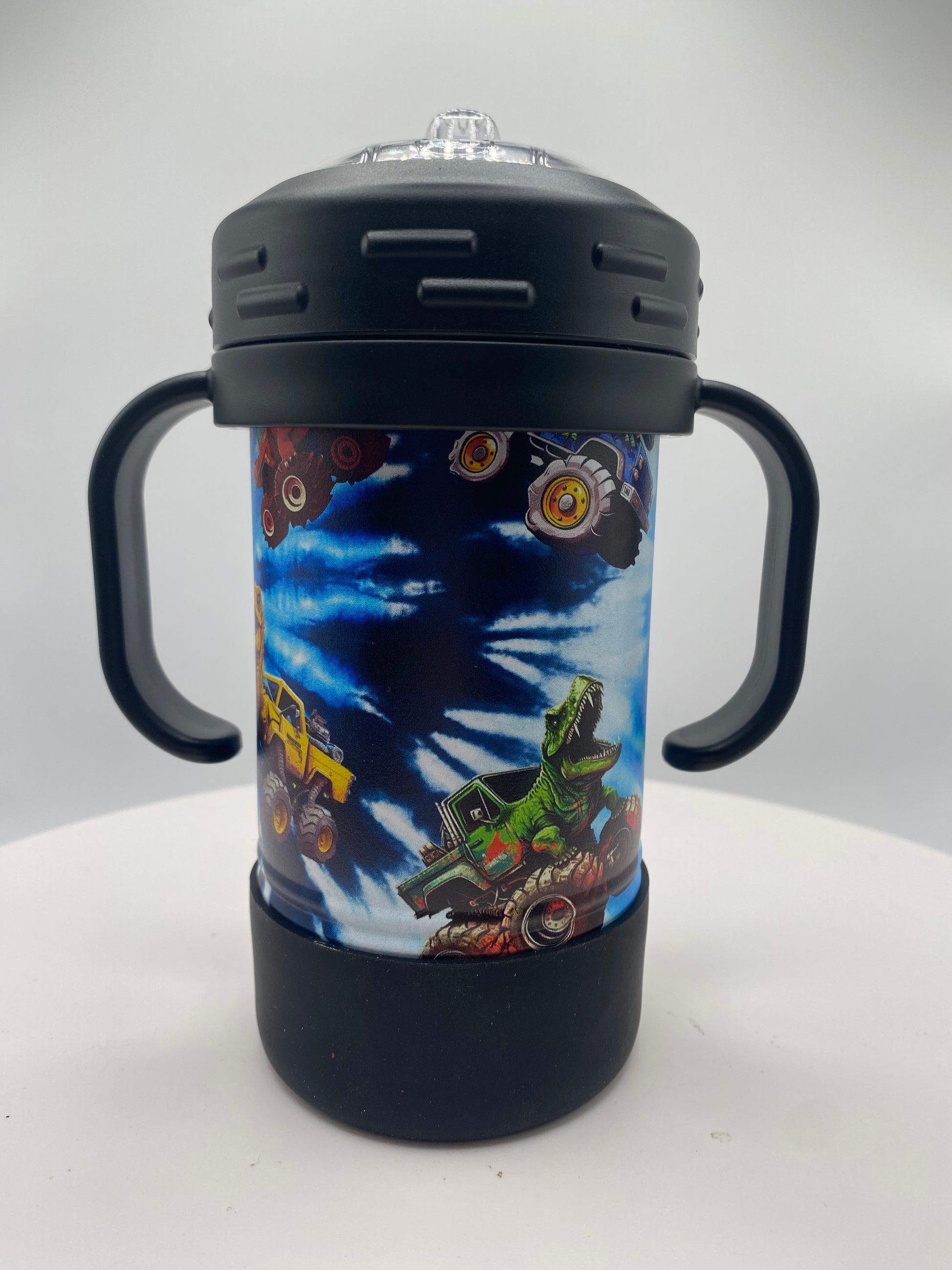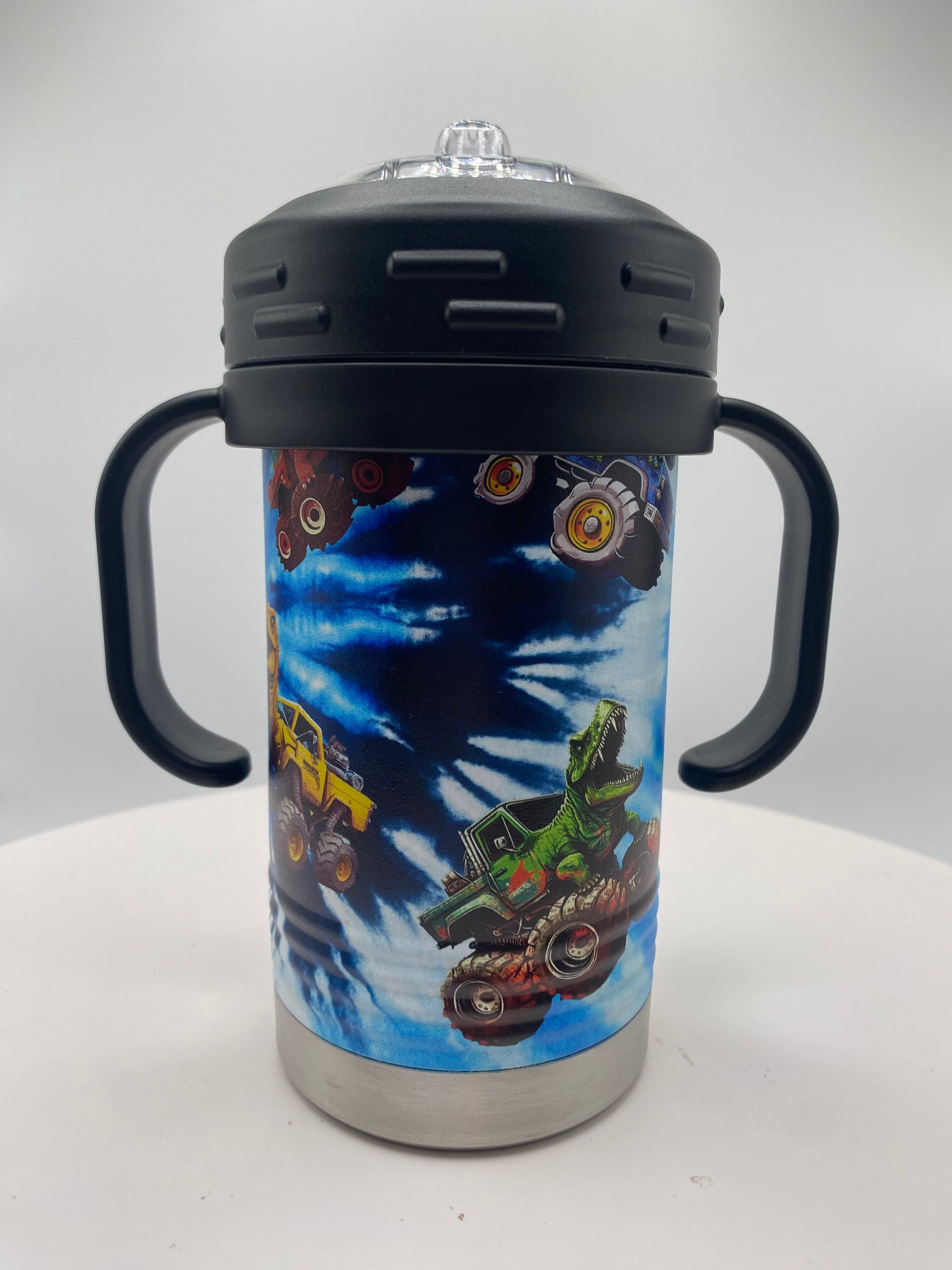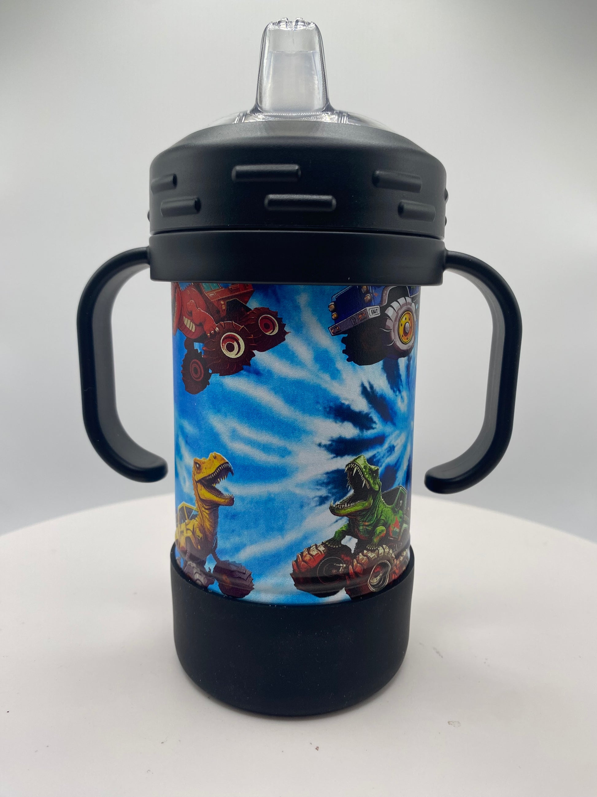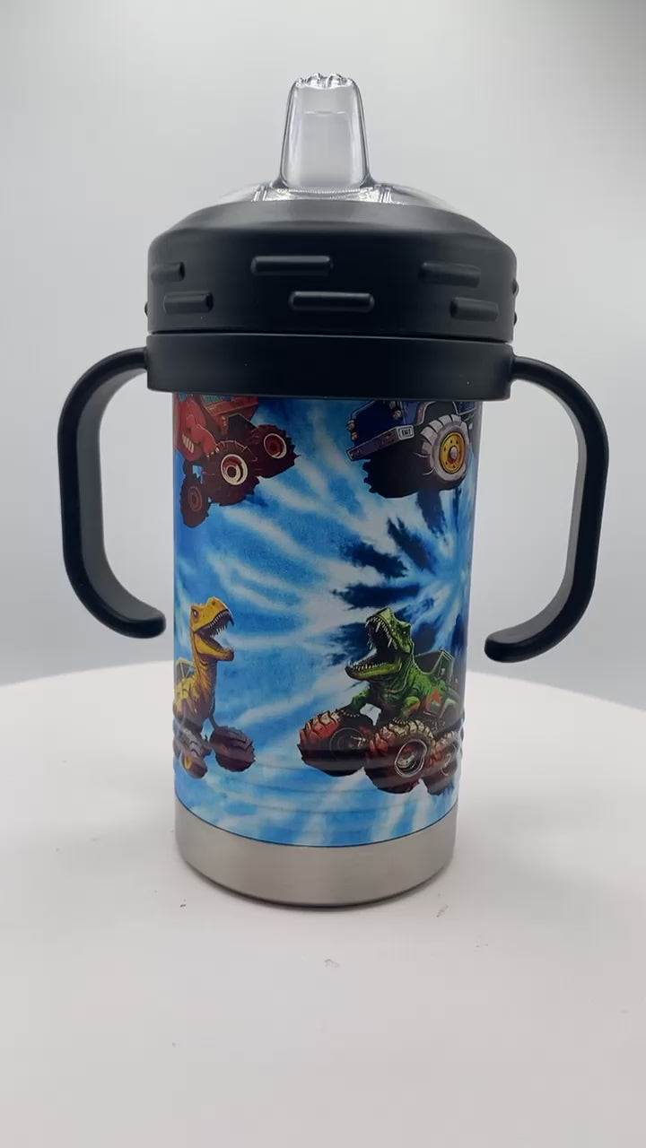 Polar Camel Sippy Cups are 10 oz. double wall insulated powder coated cups featuring removable handles, a silicone boot, and spill proof lid. The screw on lid features a hard plastic spout with a rubber leak proof valve. The cup can be used with or without the heavy-duty plastic handles that attach to the lid. They offer plenty of space for personalization and can be taken apart for easy cleaning. The plastic lid may need an occasional deep cleaning.