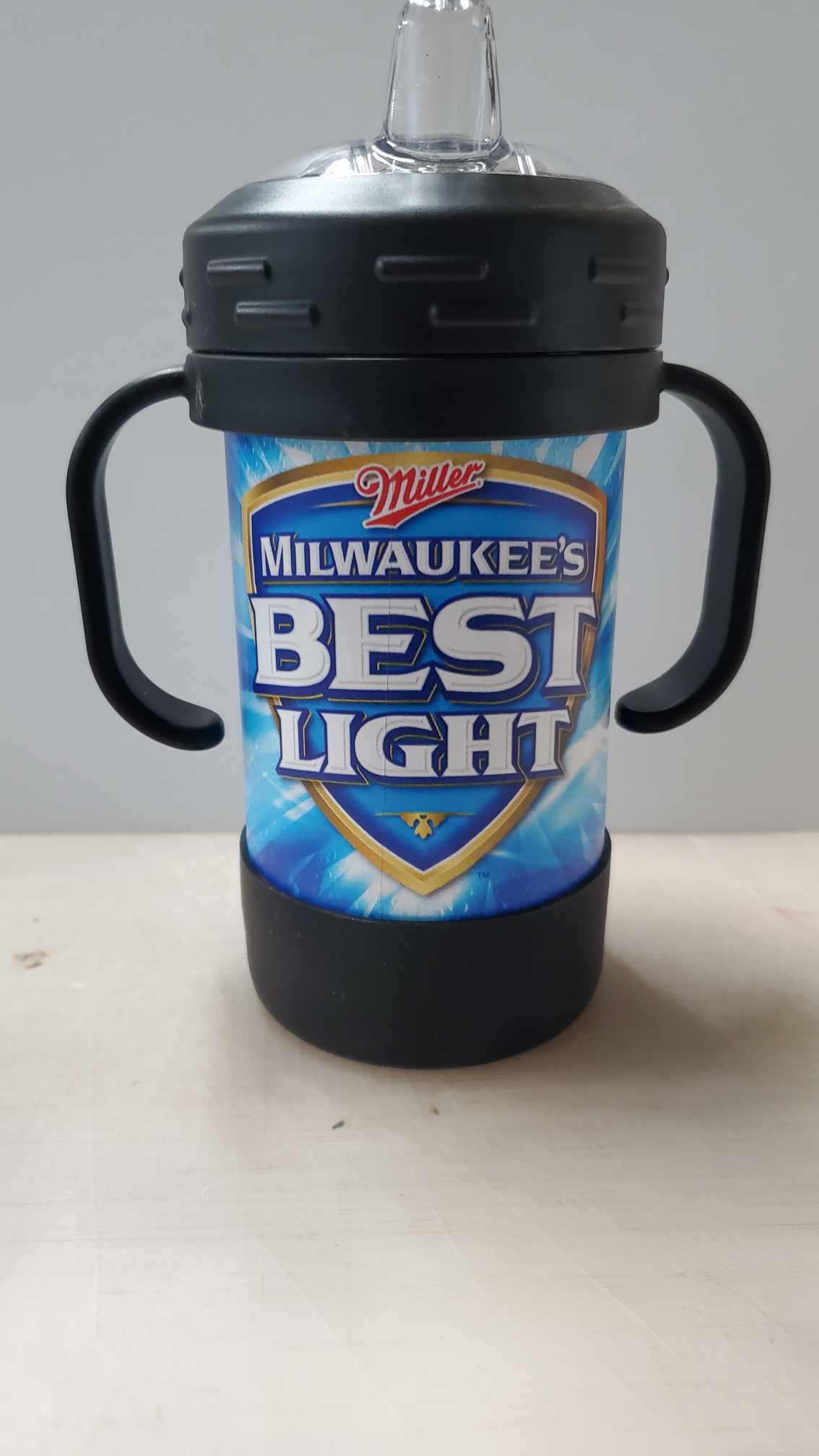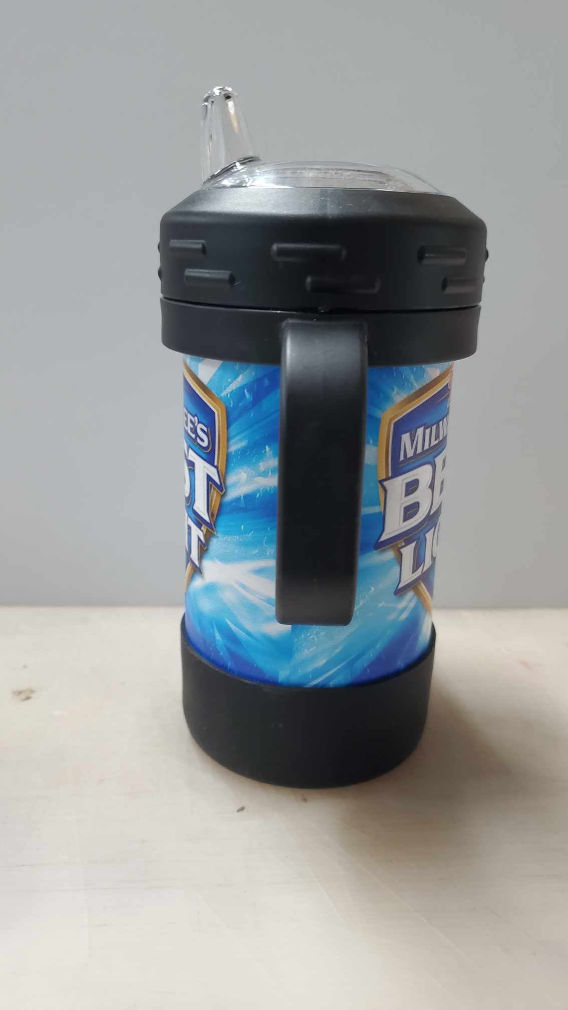 Polar Camel Sippy Cups are 10 oz. double wall insulated powder coated cups featuring removable handles, a silicone boot, and spill proof lid. The screw on lid features a hard plastic spout with a rubber leak proof valve. The cup can be used with or without the heavy-duty plastic handles that attach to the lid. They offer plenty of space for personalization and can be taken apart for easy cleaning. The plastic lid may need an occasional deep cleaning.
