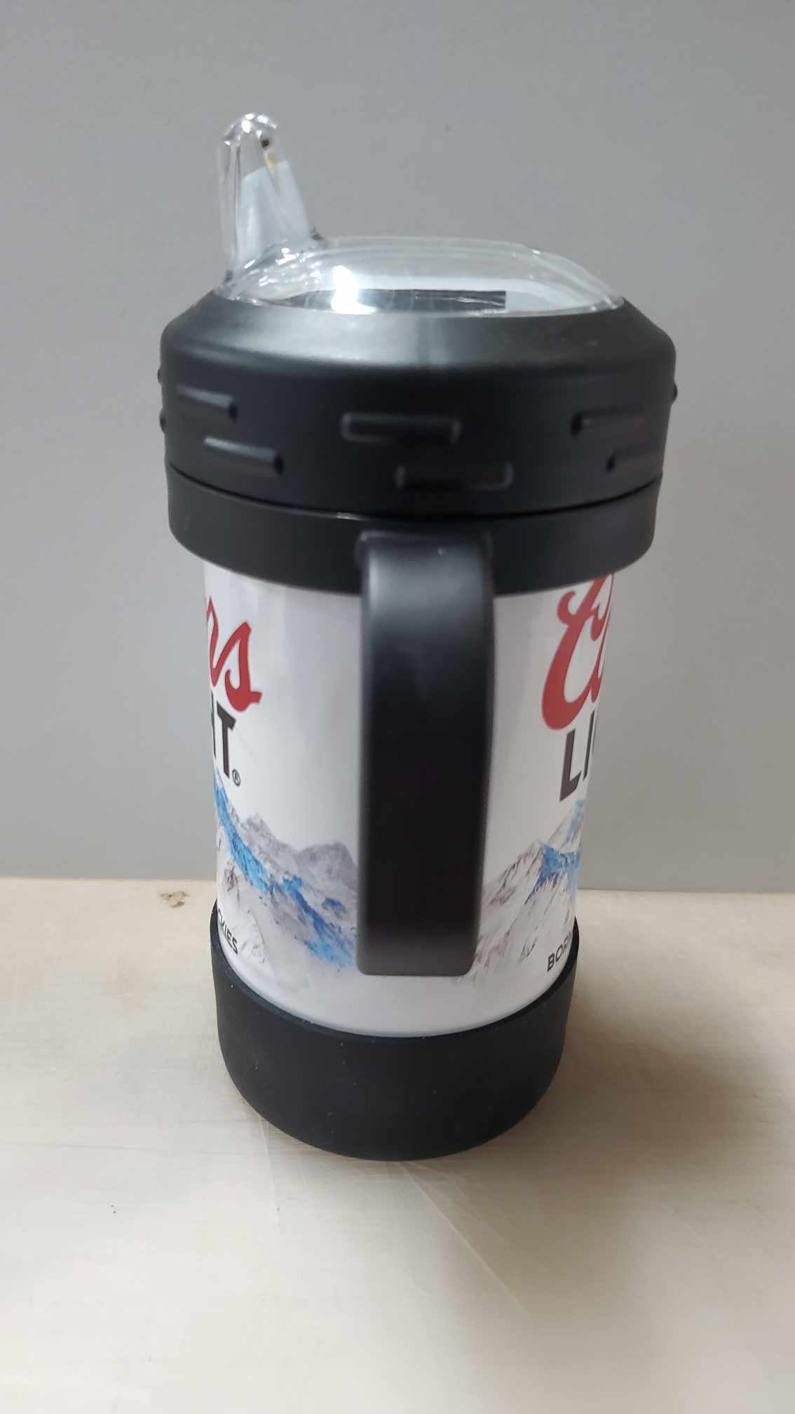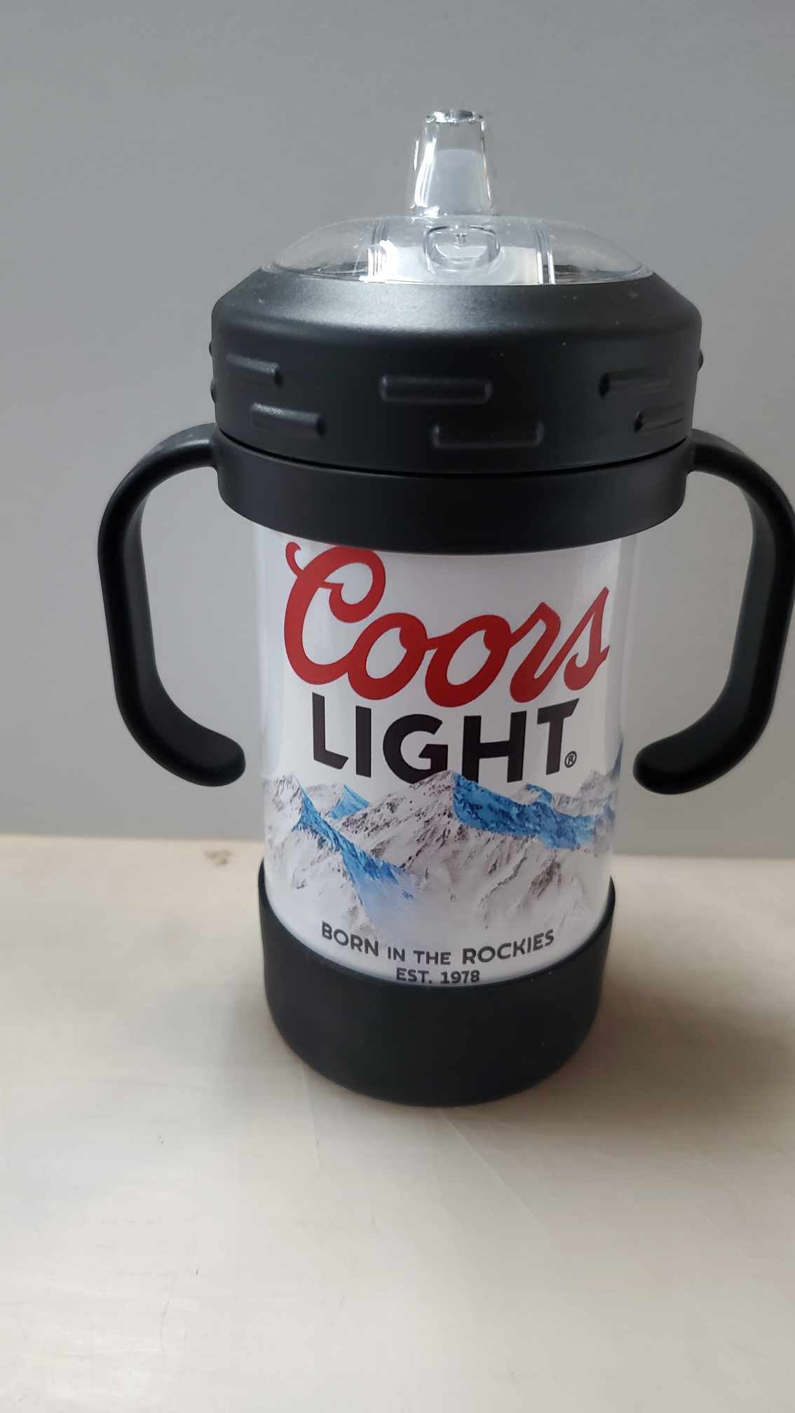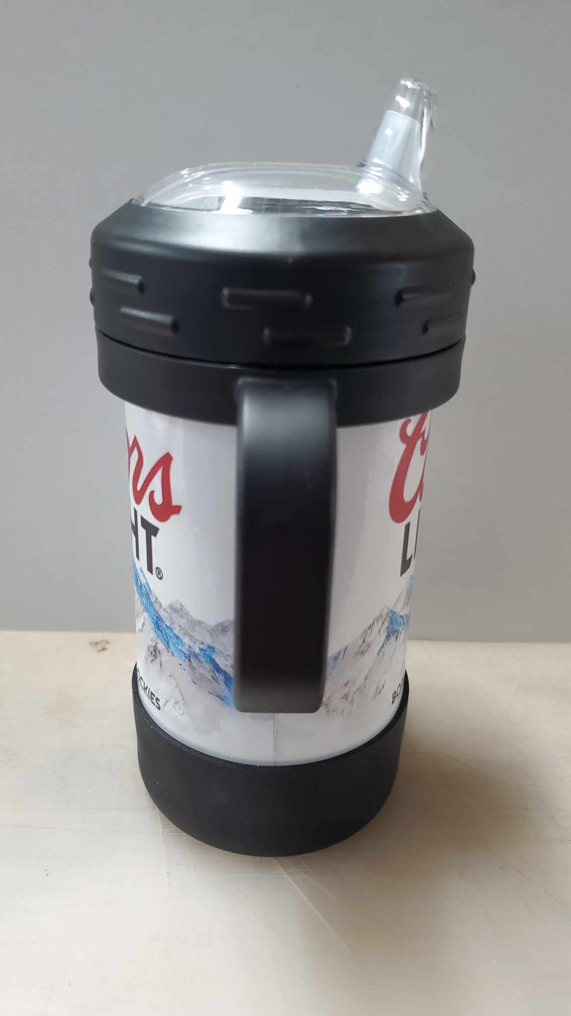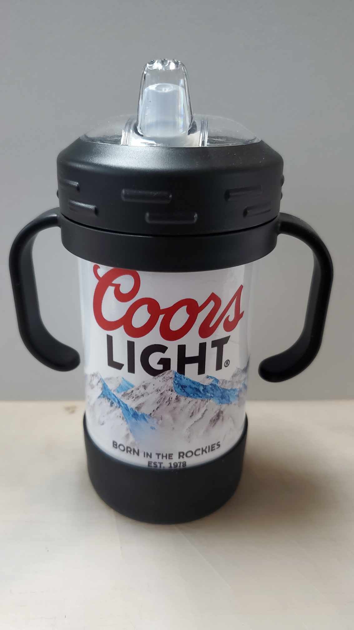 Polar Camel Sippy Cups are 10 oz. double wall insulated powder coated cups featuring removable handles, a silicone boot, and spill proof lid. The screw on lid features a hard plastic spout with a rubber leak proof valve. The cup can be used with or without the heavy-duty plastic handles that attach to the lid. They offer plenty of space for personalization and can be taken apart for easy cleaning. The plastic lid may need an occasional deep cleaning.