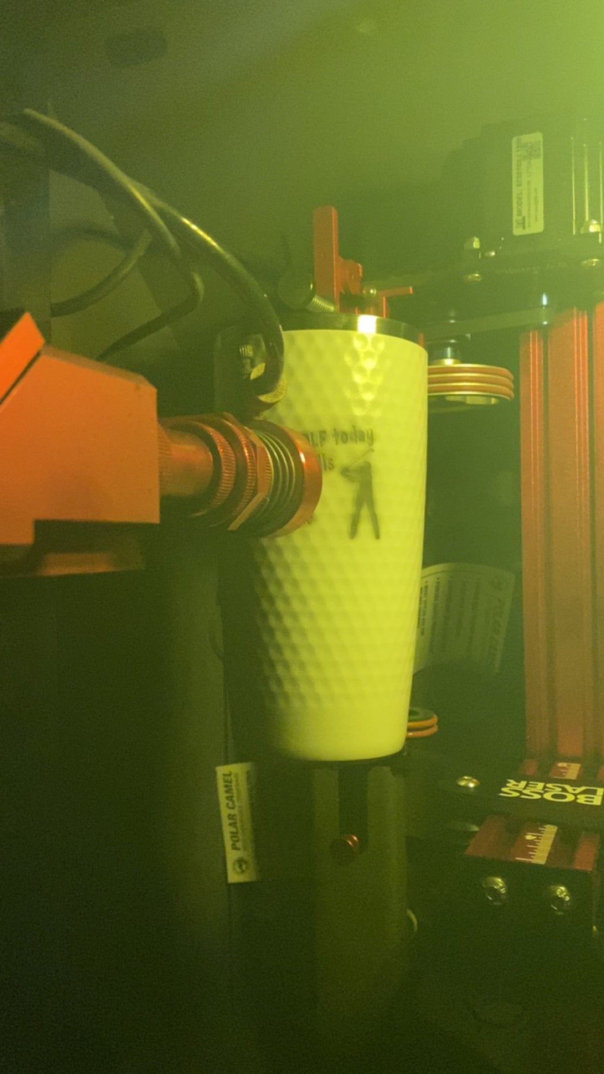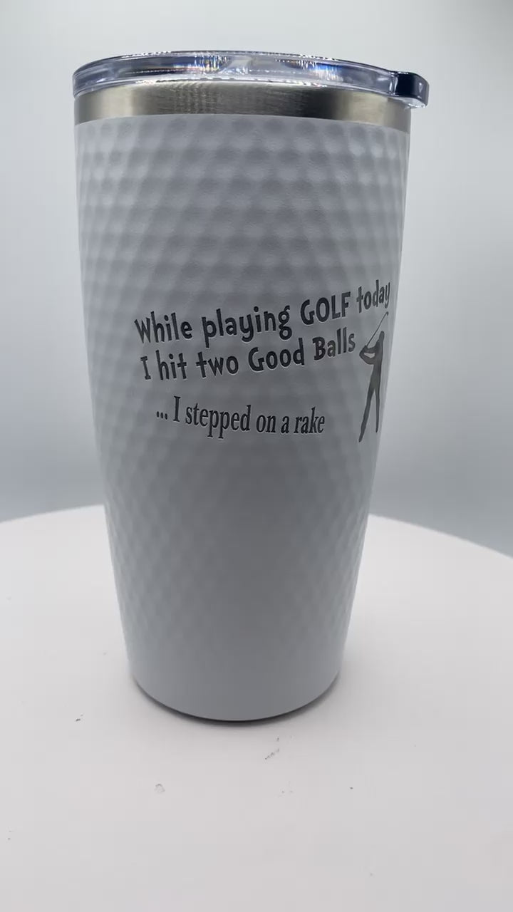 If you're looking for a new and unique award for a golf tournament or a great personalized gift for the golfers in your life, this Polar Camel 20 oz. tumbler with dimples is perfect! The tumbler resembles a golf ball and can be personalized with the graphics of your choice! The tumbler has the heat/cold retention properties you expect from Polar Camel drinkware and comes with a slider lid to prevent spills. Tapered at the bottom it fits most cup holders.