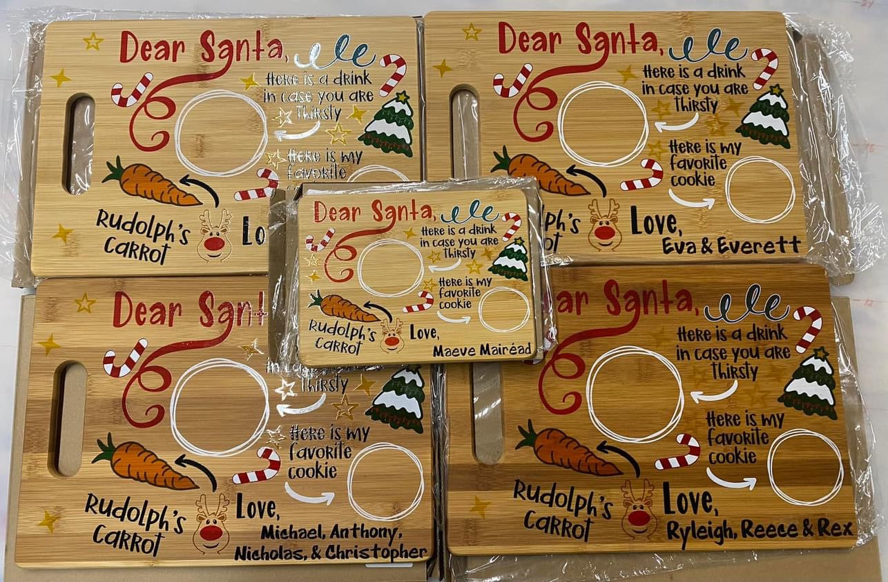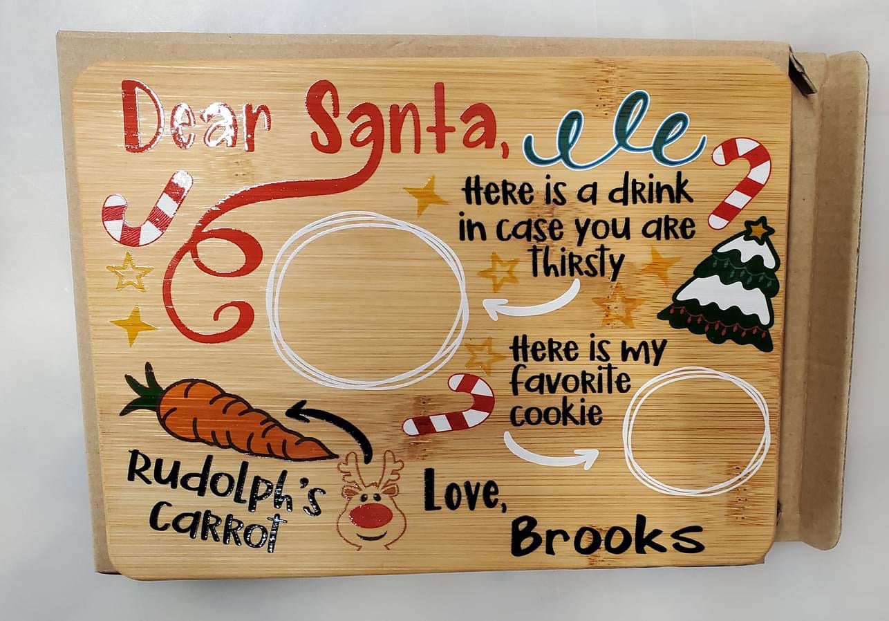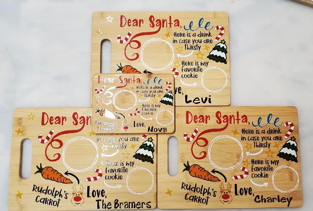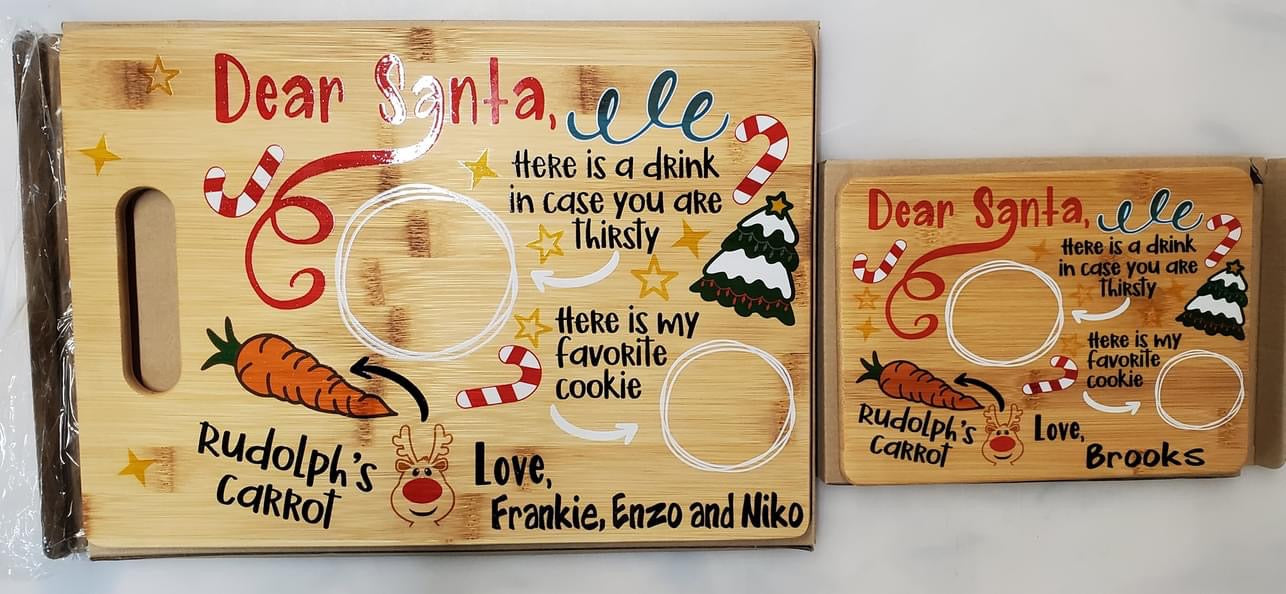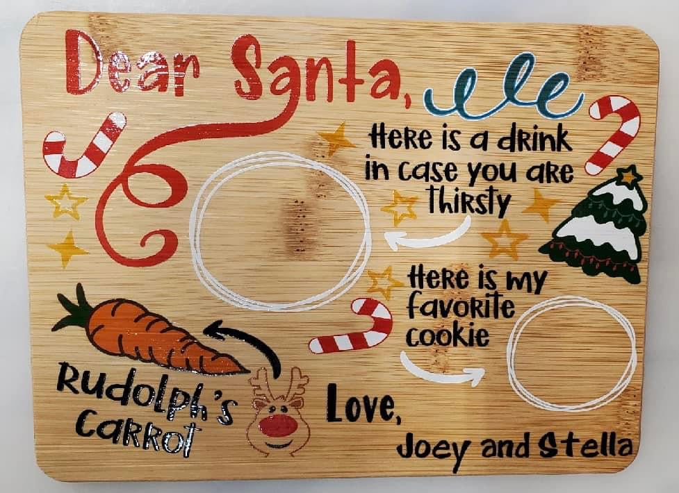 Make getting ready for Santa a fun family tradition with a custom UV printed Santa Serving tray with your family name or the name of your child/children.