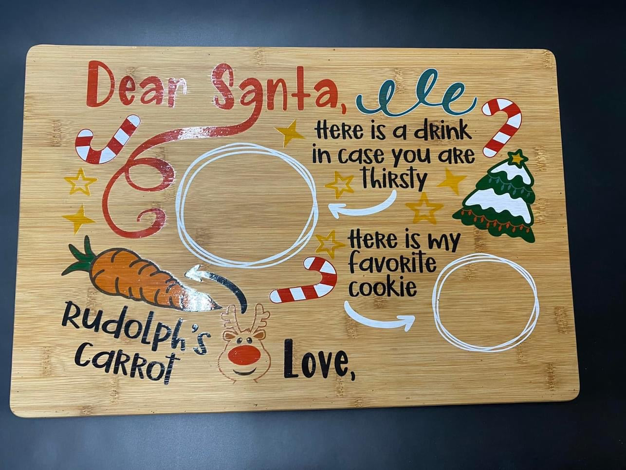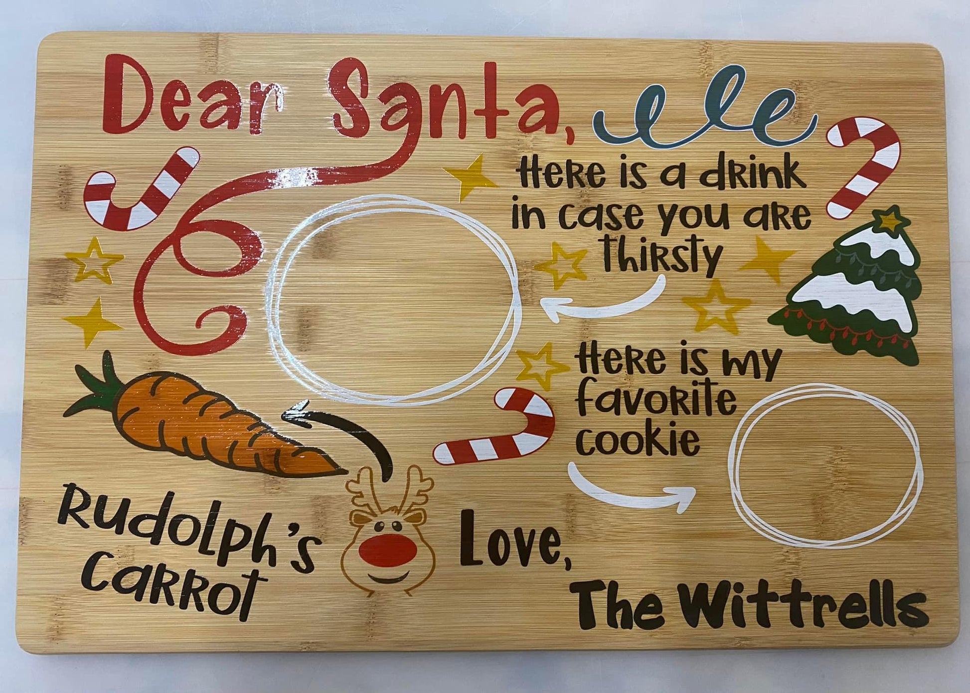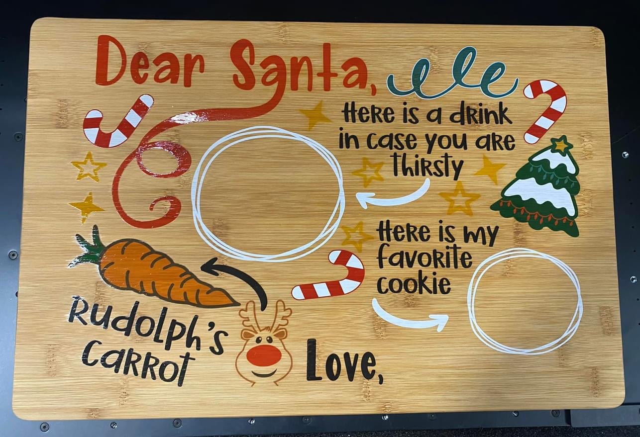 Make getting ready for Santa a fun family tradition with a custom UV printed Santa Serving tray with your family name or the name of your child/children.