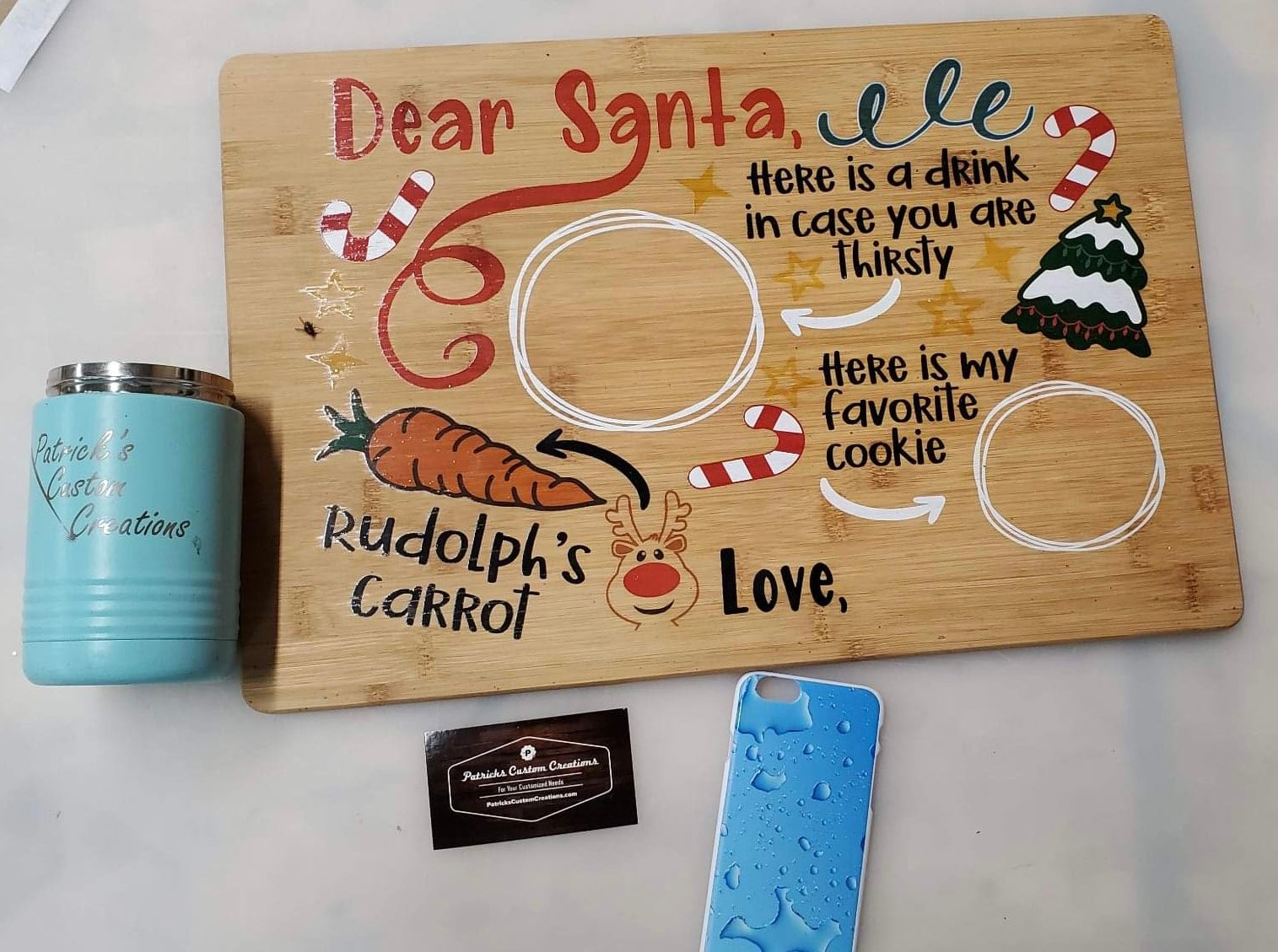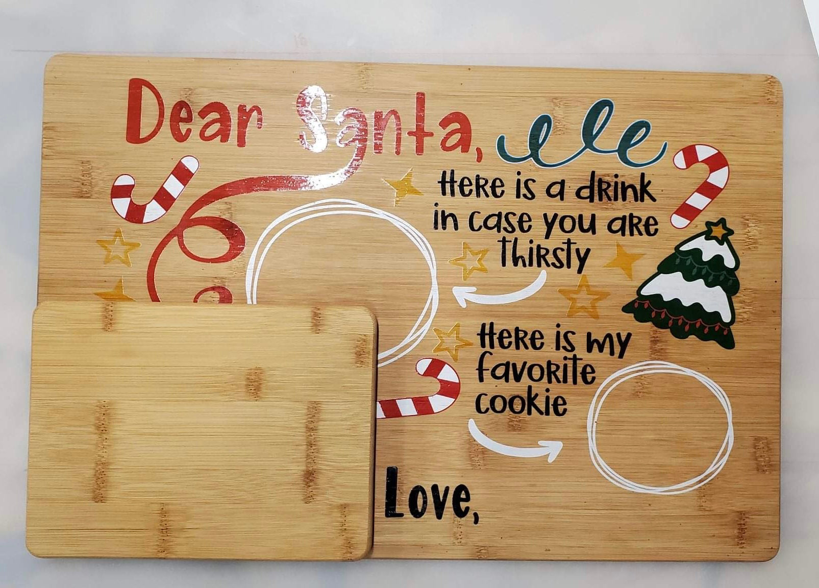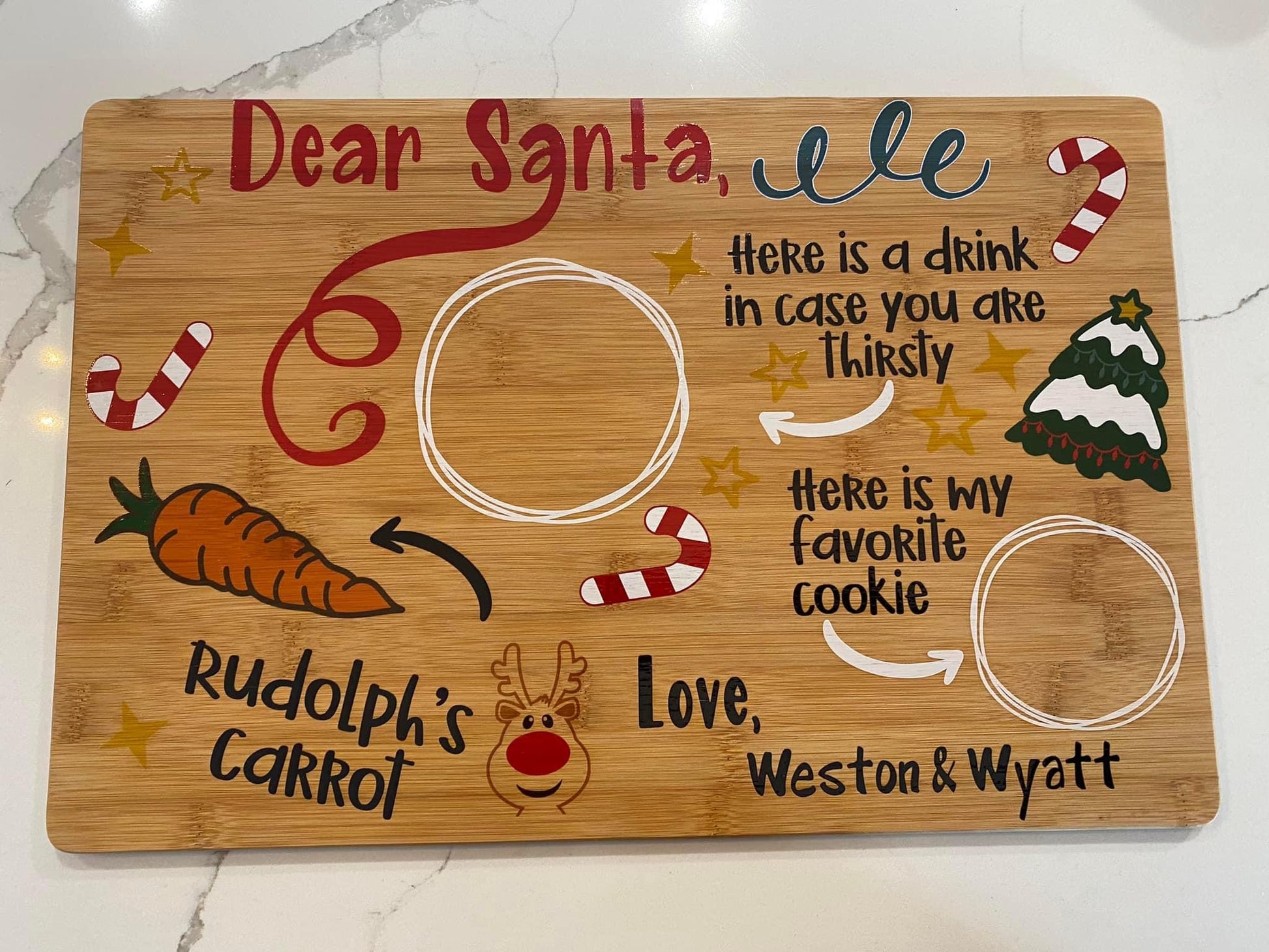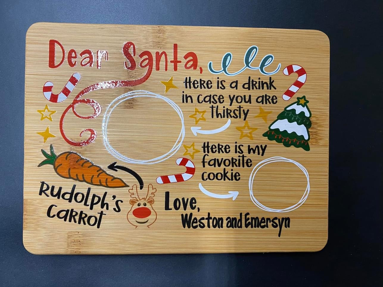 Make getting ready for Santa a fun family tradition with a custom UV printed Santa Serving tray with your family name or the name of your child/children.